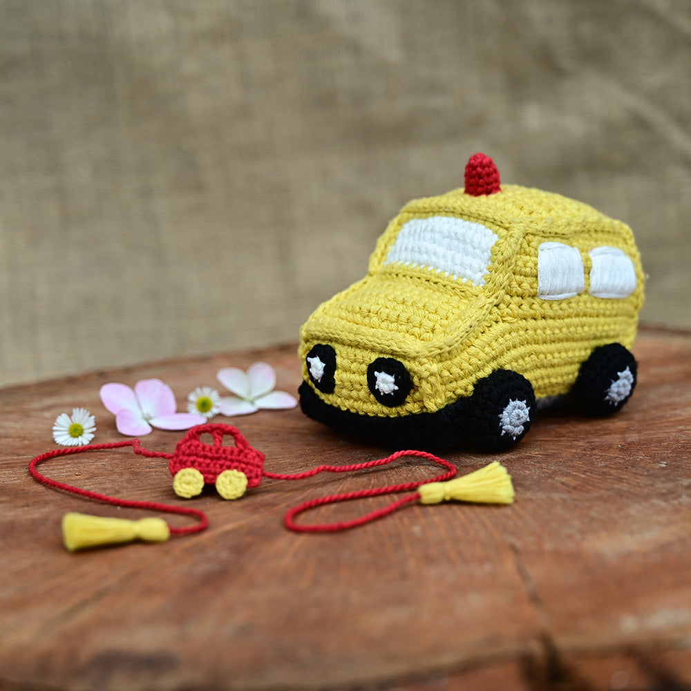 Hand crafted with care, this plush toy is completely BPA-Free as it is made up of Non-Toxic 100% natural, breathable cotton. The textured crochet provides sensory stimulation for little ones, while the vibrant colors encourage visual development. This super-soft and cuddly plush toy is perfect for cuddling, playtime, or as a decorative piece in your child's room. Safe for all ages, this adorable toy presents no choking hazard and is machine-washable making after-care of the product very easy. A perfect gift for any occasion, this plush toy can become a cherished sleep aid. It is locally & ethically produced, empowering rural women and preserving traditional craftsmanship.