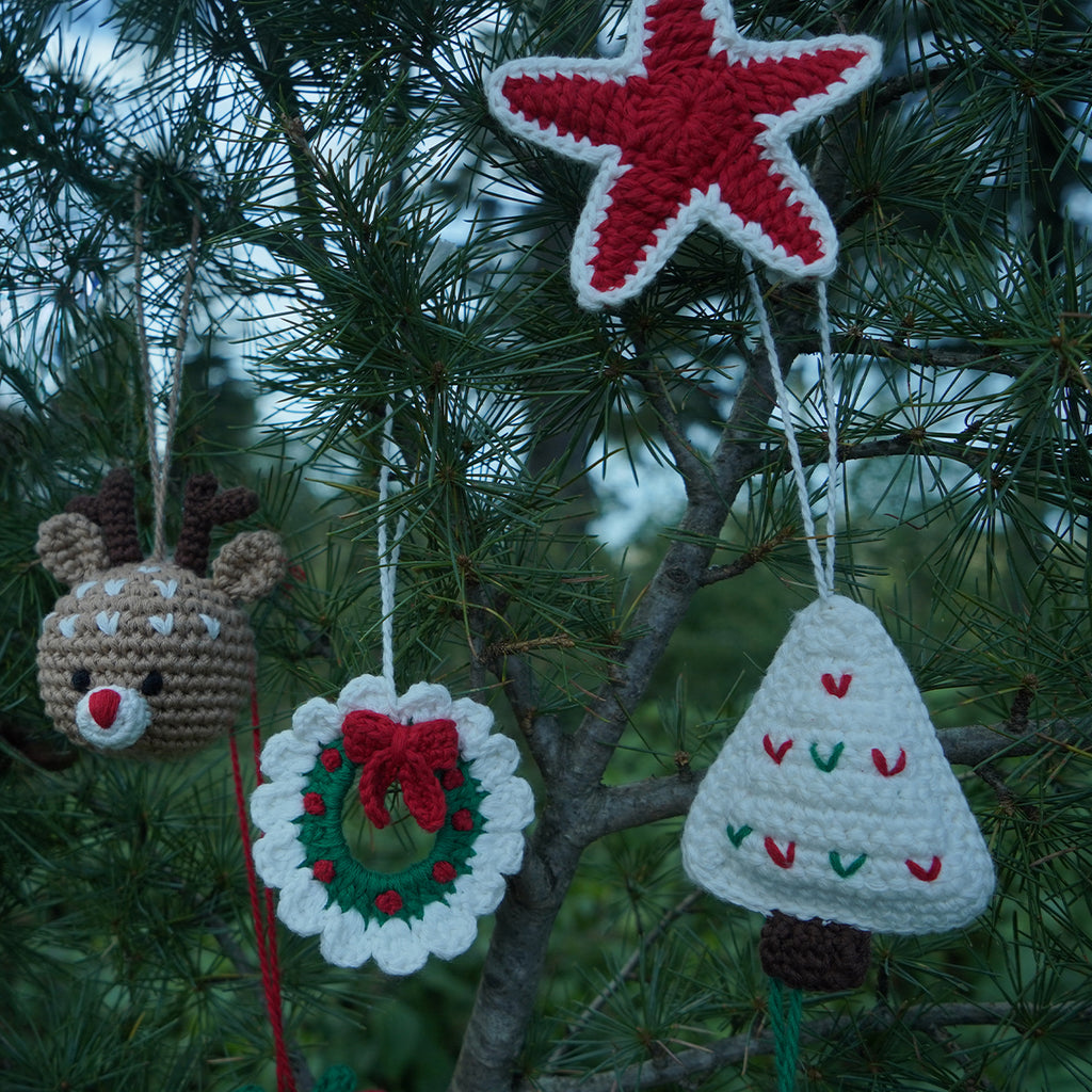 Bring home a touch of handmade festive magic with this charming set of fourteen crochet ornaments — Heart, Snowman, Star, Bauble, Mistletoe, Santa, Tree, Snowflake, Bow, Reindeer, Holly leaf, Moon, Candy Cane, Gift Box , Crafted with precision by women artisans in Uttarakhand, this set blends Indian warmth with a modern global aesthetic. Perfect to decorate homes with meaningful, earth-friendly festive pieces.