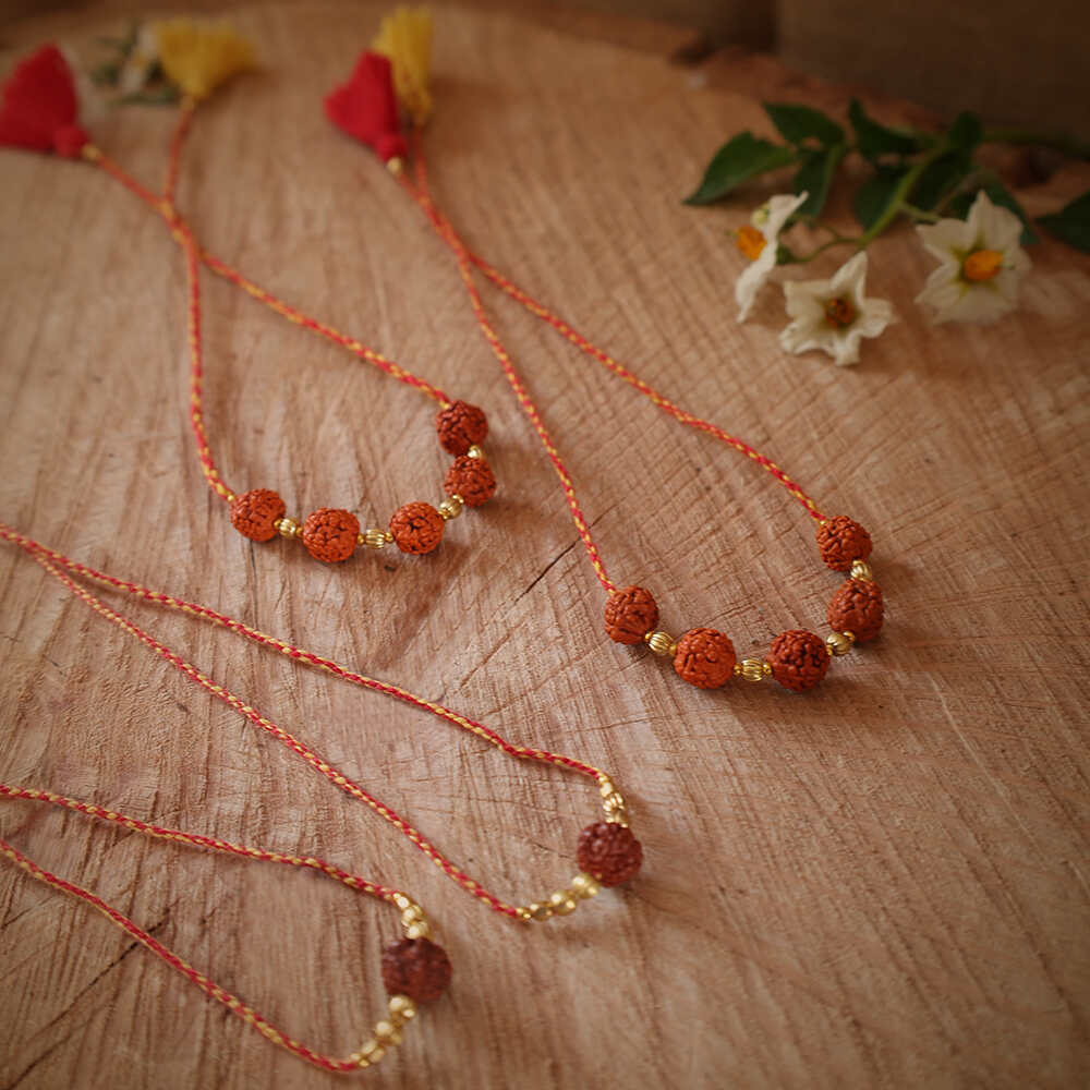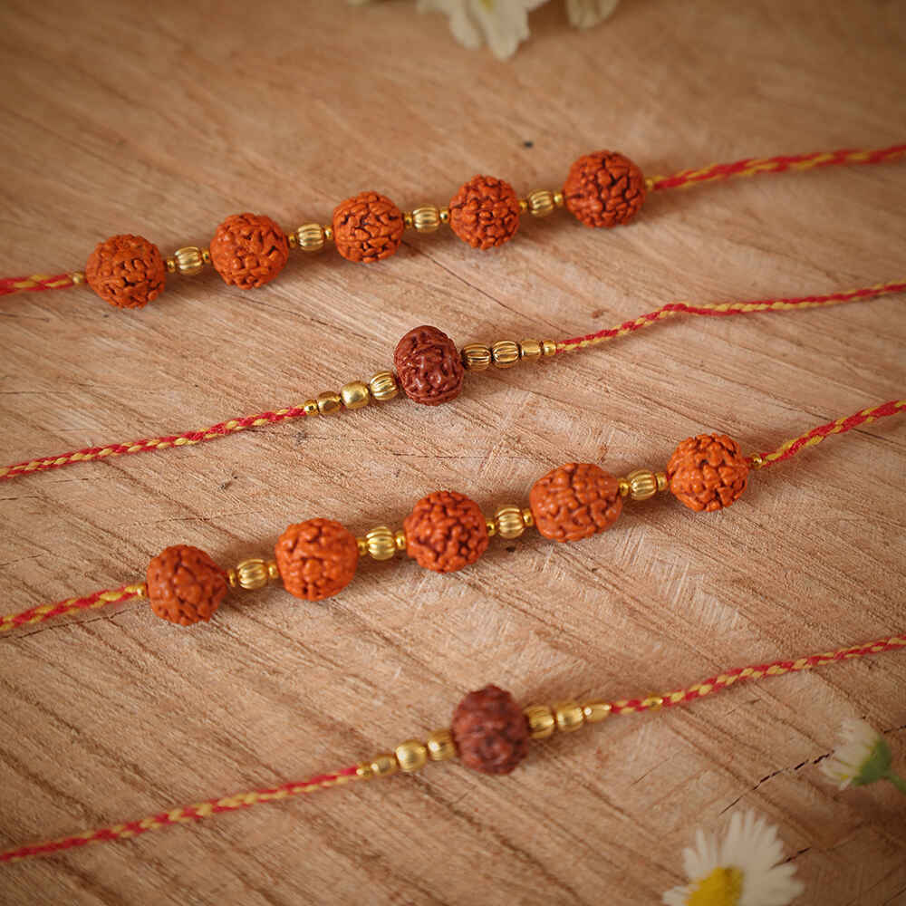 This listing includes 4 handcrafted Rudraksha Rakhi